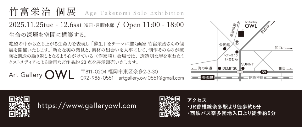 竹富栄治 個展11/25~12/6(福岡市 Art Gallery OWL)