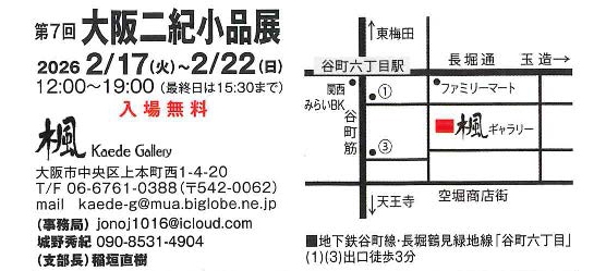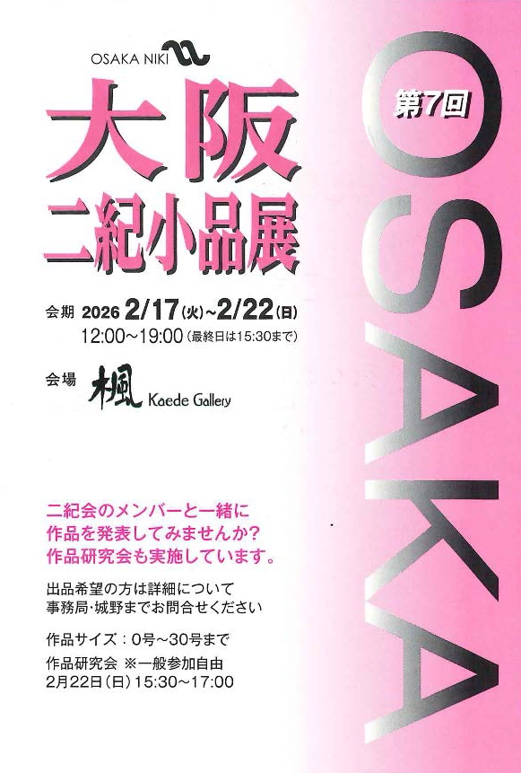 第7回大阪二紀小品展2/17~2/22(大阪市 楓ギャラリー)